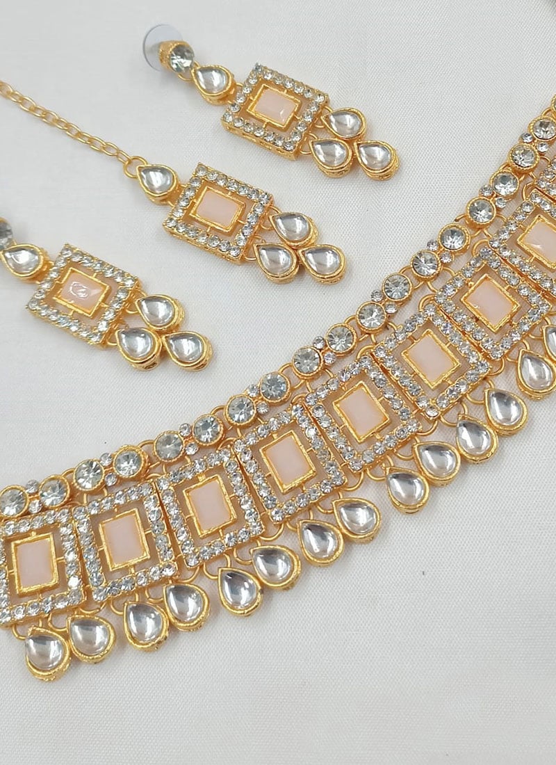 Be the first to review “Golden Plated Kundan Necklace With Peach Stone”
